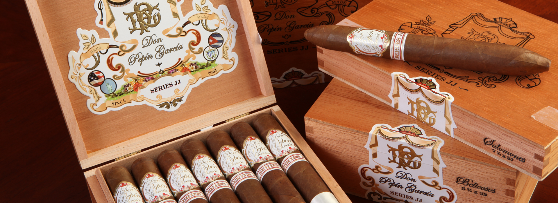 Series JJ gets its name from Pepin’s first name (Jose) and that of his son (Jaime). The original “JJ” is a delicious cigar handmade in Miami. The wrapper is a slippery, smooth, butterscotch-brown Corojo-Rosado leaf, and the binder and filler are 100% Nicaraguan. 3/4 to Full-Bodied, these cigars are elegantly balanced boasting rich earth tones that are accented by hints of ginger and cedar. The line is comprised of 3 boutique sizes packaged in boxes of 20 cigars. It includes a super-impressed Salomon that is packaged in an attractive “flip-top” cedar box of 5 cigars.