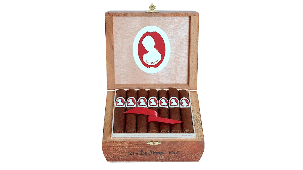 This cigar, blended by Jaime Garcia and Pete Johnson of Tatuaje Cigars, is the perfect representation of Janny. La Dueña has a binder and filler encompassing Connecticut Broadleaf and Nicaraguan tobacco (100% from the Garcias farm in Esteli), and the wrapper is a Connecticut Broadleaf. It is a Medium to Full Body cigar and will be available in 5 sizes in boxes of 21 and just one size is a Box-Pressed, packaged in box of 12, for a total of 6 sizes.