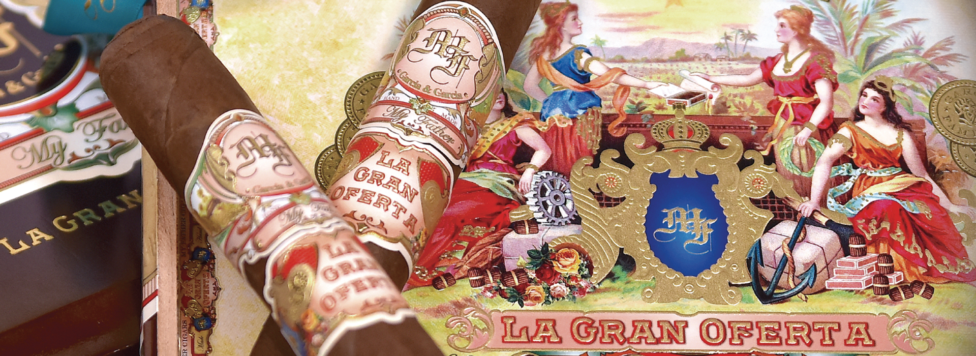My Father-La Gran Oferta (The Great Offering) is the latest addition to the very well-known and prestigious “My Father” family. The cigars are rolled in the Garcia’s large facility in Estelí, Nicaragua, with Cuban-seed binder and filler tobaccos grown on their own Nicaraguan farms. The wrapper is a very oily Habano Rosado and it’s a medium to ¾ cigar. La Gran Oferta translates to “the great offering,” and the cigar features stunning artwork created after a very old cigar brand that sold under the same name, around 1913. The smoke comes in five sizes: Toro, measuring 6×50; Robusto, 5×50; Torpedo, 6 1/8 × 52; Toro Gordo, 6×56; Lancero, 7 1/2 × 38. All in boxes of 20 cigars.