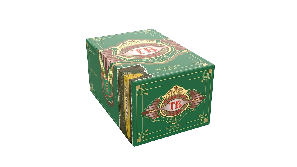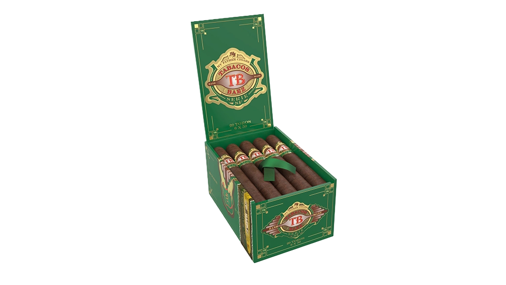 Tabacos Baez-Serie SF, where SF stands for Short-Filler also known as “Cuban-Sandwich”, is the first Short-Filler brand created by My Father Cigars as a house brand. It is a Medium-Bodied blend perfectly balanced and finished with an oily Habano-Nicaraguan wrapper that provides the cigar with a touch of coffee notes. They are packaged in a Cabinet Box style that holds 20 cigars. The vivid green of the box with gold accents provides a truly distinctive presentation.