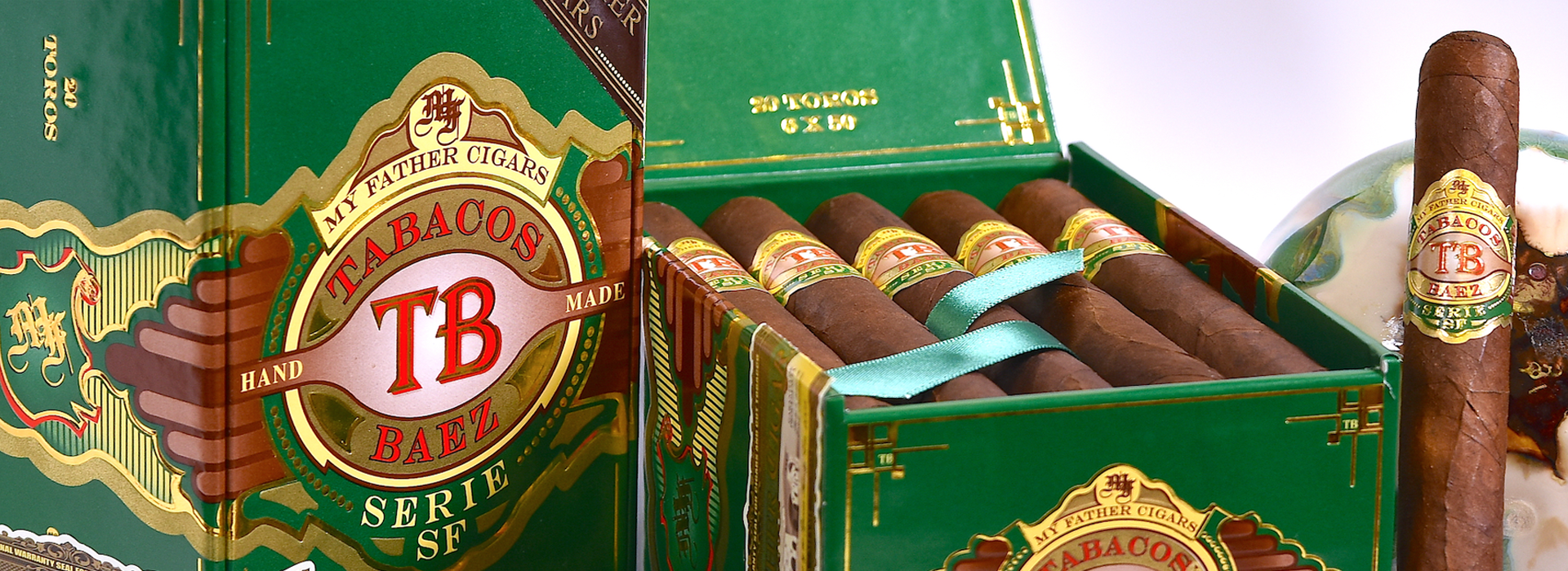 Tabacos Baez-Serie SF, where SF stands for Short-Filler also known as “Cuban-Sandwich”, is the first Short-Filler brand created by My Father Cigars as a house brand. It is a Medium-Bodied blend perfectly balanced and finished with an oily Habano-Nicaraguan wrapper that provides the cigar with a touch of coffee notes. They are packaged in a Cabinet Box style that holds 20 cigars. The vivid green of the box with gold accents provides a truly distinctive presentation.